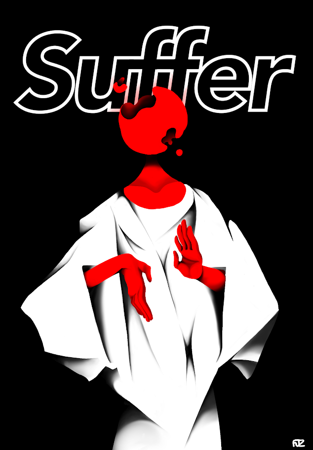 An interesting emotionally charged piece I made to push the limits of my abstraction and graphic design skills, also one of the first pieces where I used a solely red, black and white color pallet.